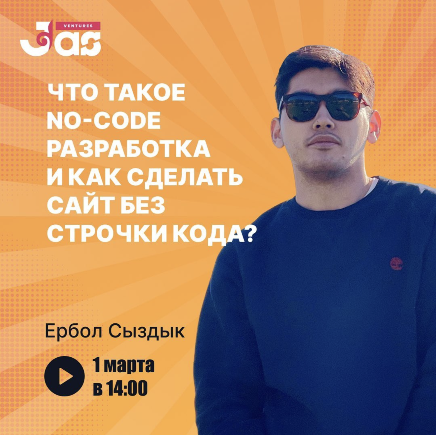 Educational workshops JVA Workshops from JAS Ventures Almaty continue! ? ? The next speaker is Yerbol Syzdyk with the topic: "What is No-code development and how to make a website without a line of code?" ? A little bit about our speaker:Erbol is a Senior React Developer at BI Group. He has developed more than 50 websites. Graduated from SDU in 2018. In his free time, he likes to develop games. ? Date: March 1st⏰ Time: 14:00? Format: online, Google meet